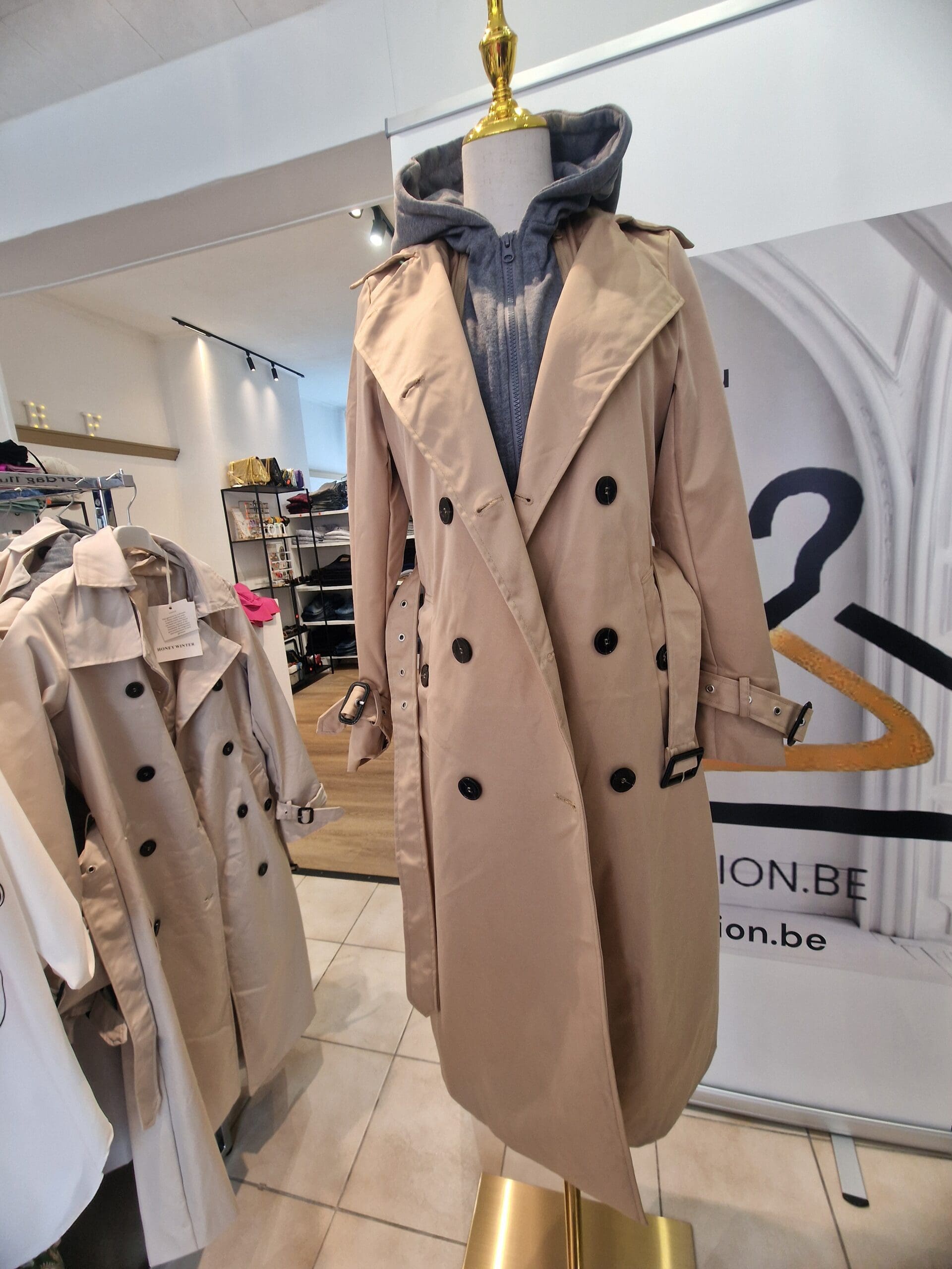 Dames lange jas -afneembare kap
